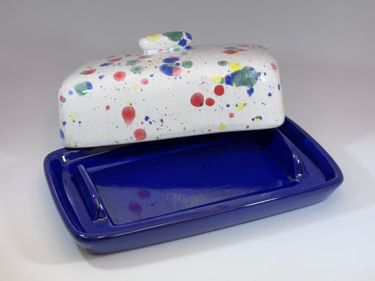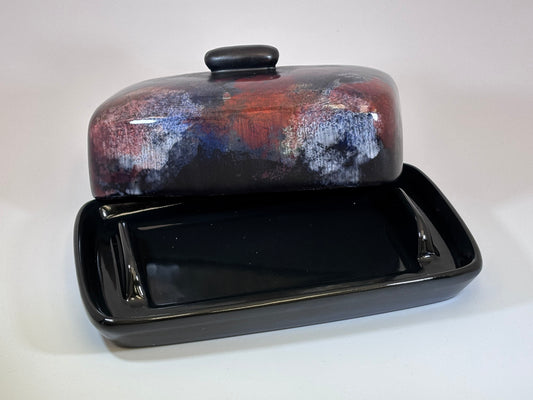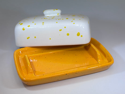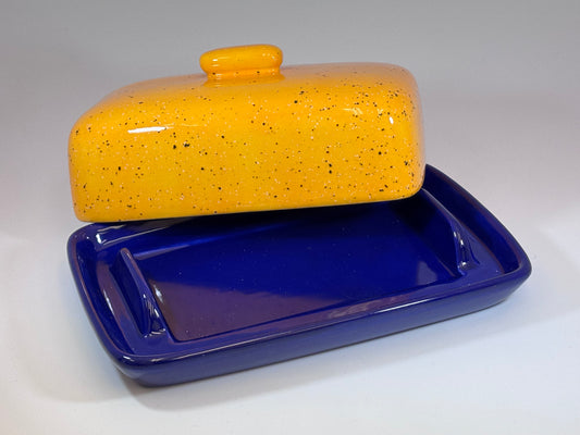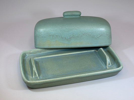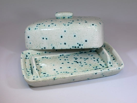 These lovely handmade butter dishes with lids are designed to hold a 250g block of butter or two American style butter sticks or a one pound block of Canadian butter. The glazed butter dishes have lead free food safe glazes that are dishwasher safe but hand washing is recommended. To maintain the handcrafted aspect, all of these butter dishes are made to order and each one is unique...!