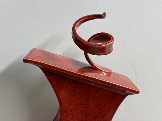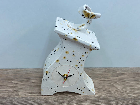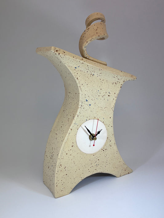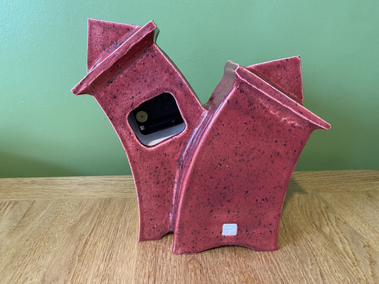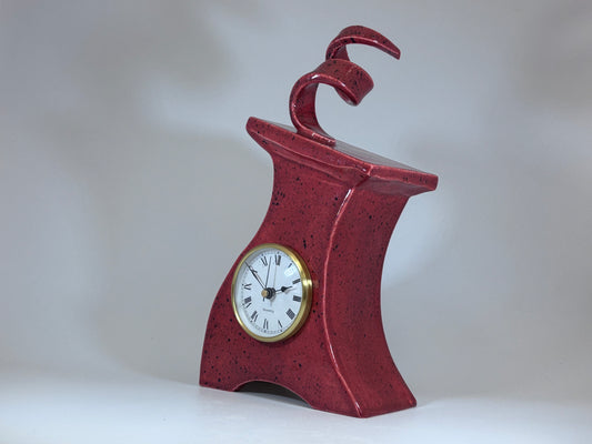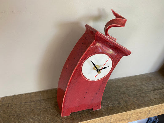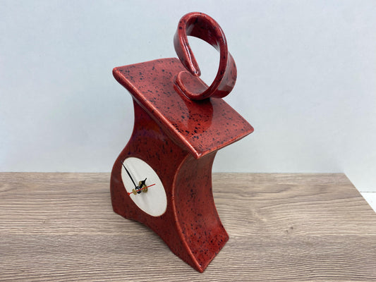 Wonky Ceramic Clock for Desk, Shelf, Mantel, Table speckled red glaze curly top