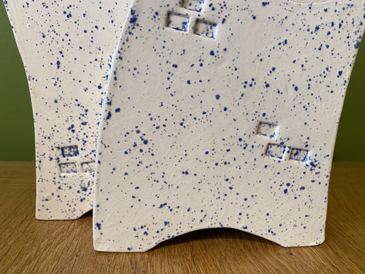 Double Ceramic Mantel Clock - Light Blue Speckle Glaze