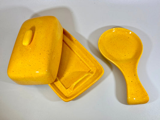 Speckled Yellow Butter Dish and Spoon Rest Set