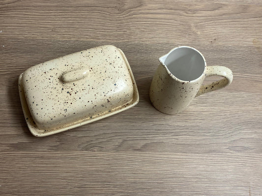 Butter Dish and Milk Jug set in Speckled Honey Glaze