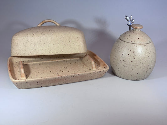 Butter Dish and Sugar Bowl Set Oatmeal Glaze