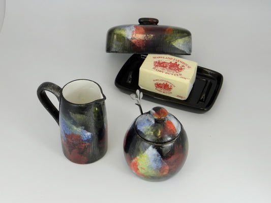 Butter Dish, Sugar Bowl and Milk Jug Set - Abstract Glaze