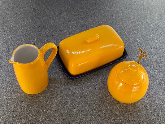 Butter Dish with Sugar Bowl Set - Yellow Glaze