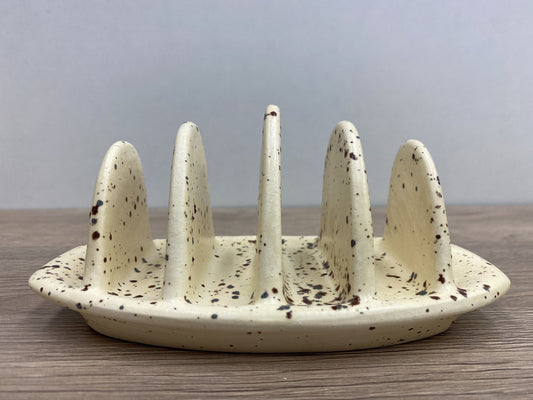 Ceramic confetti glaze toast rack with wide slots for thick toast