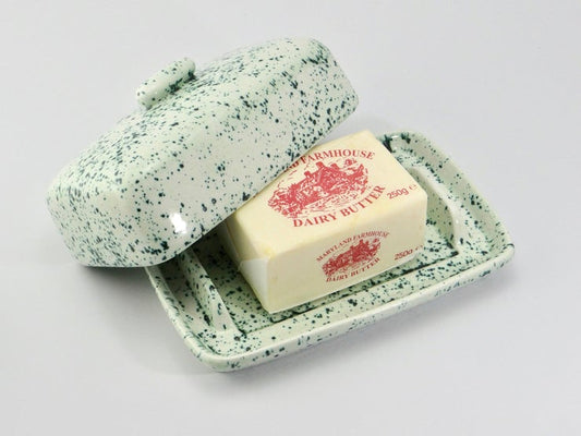 Butter Dish, Sugar Bowl and Toast Rack set Speckled Green