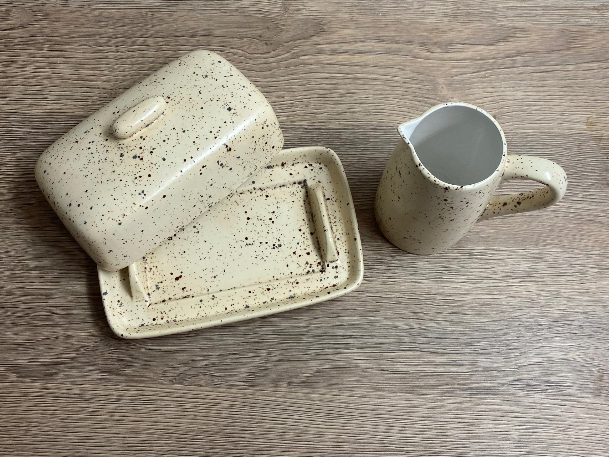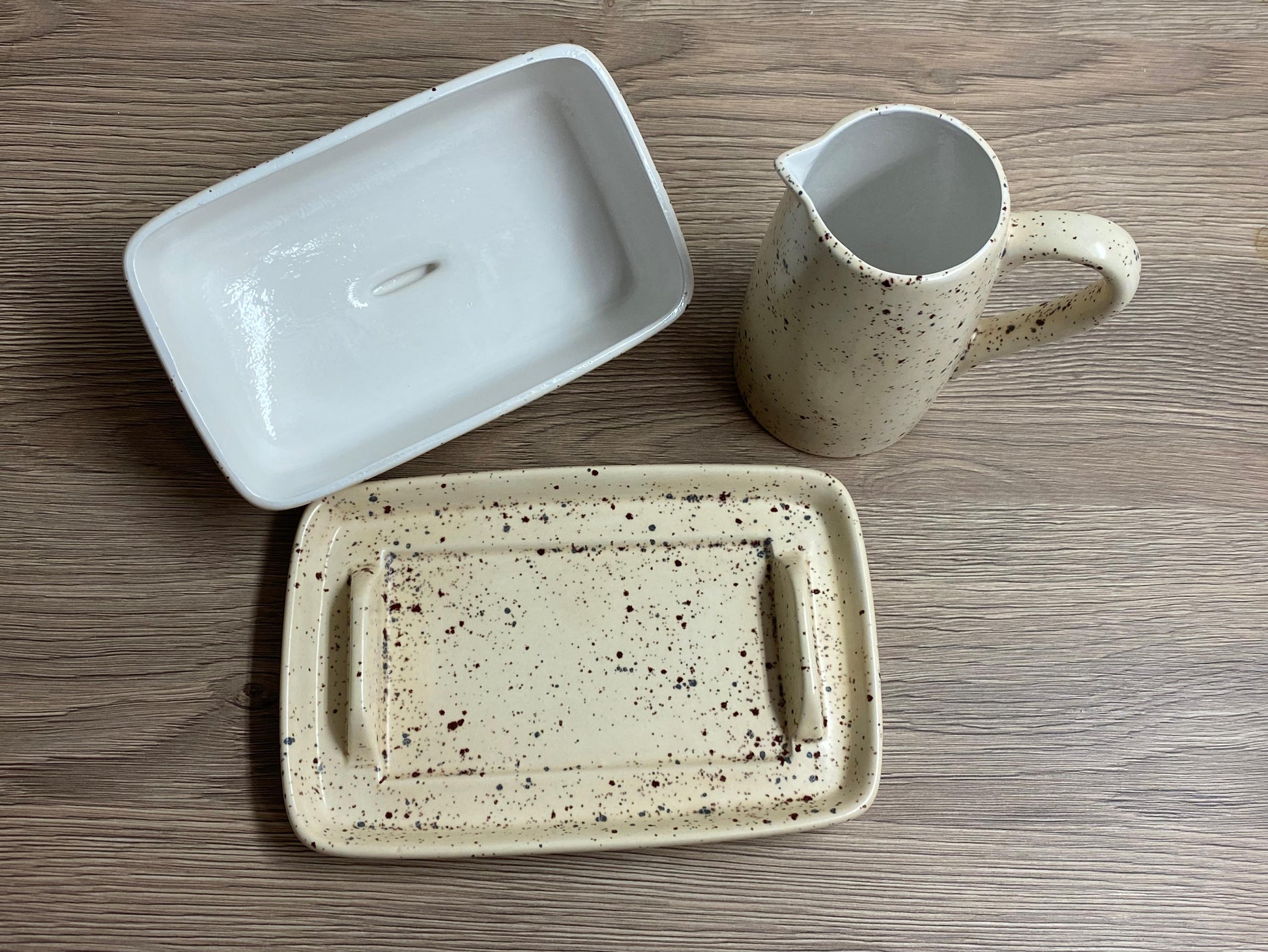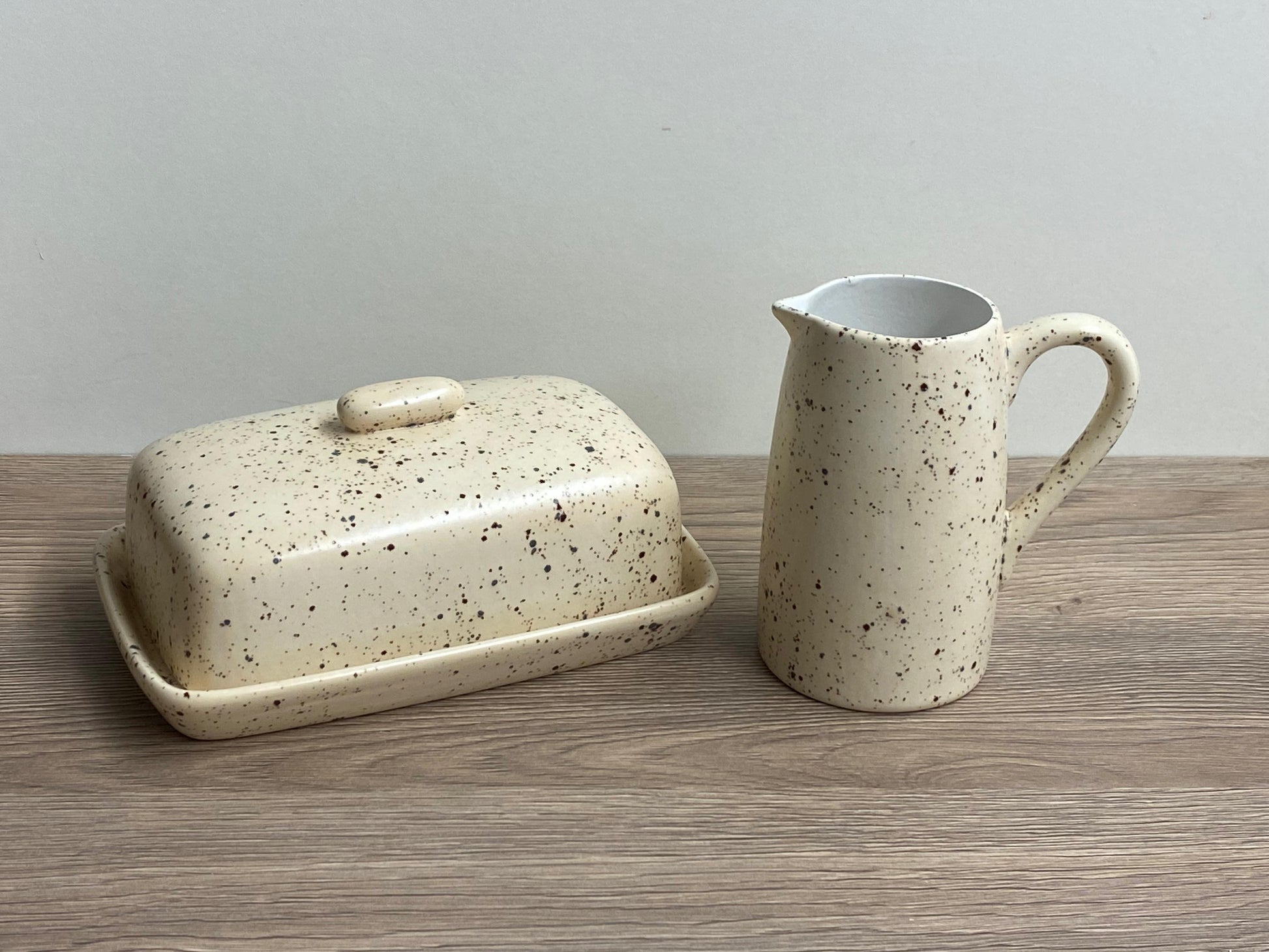 Butter Dish and Milk Jug set in Speckled Honey Glaze