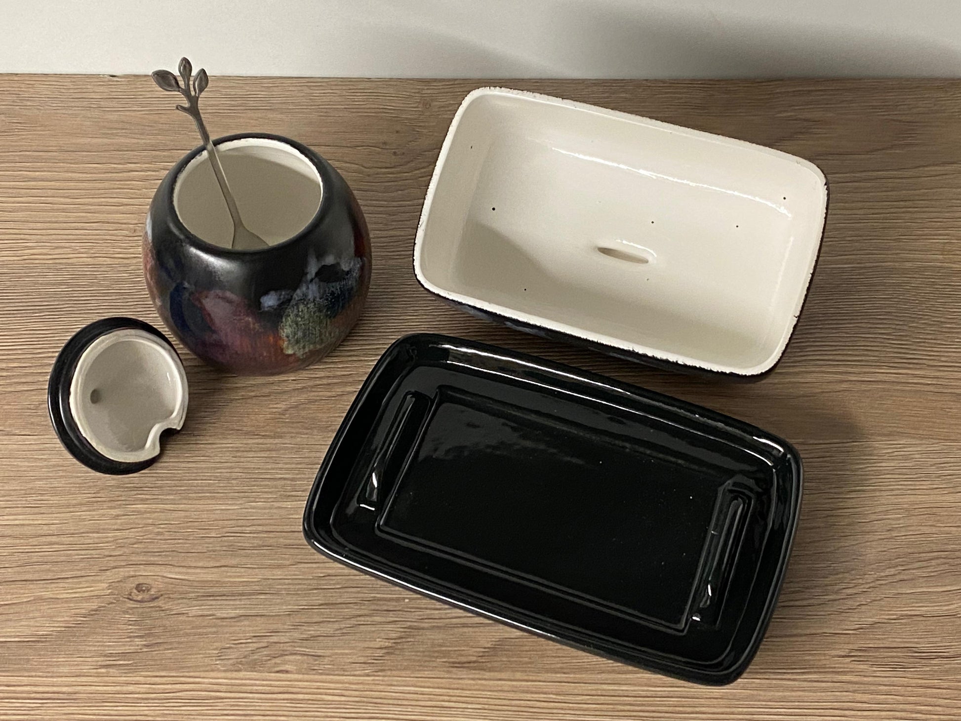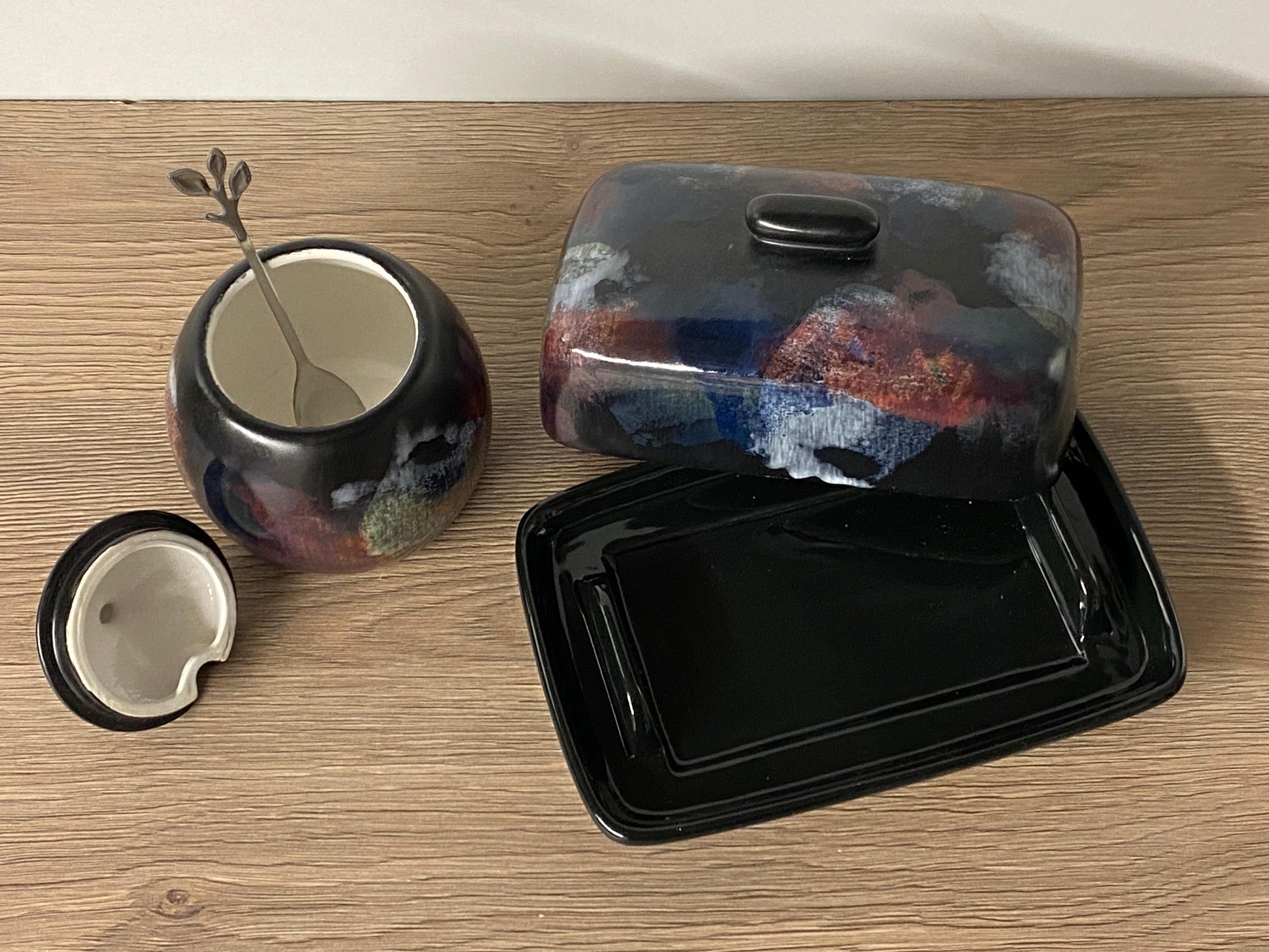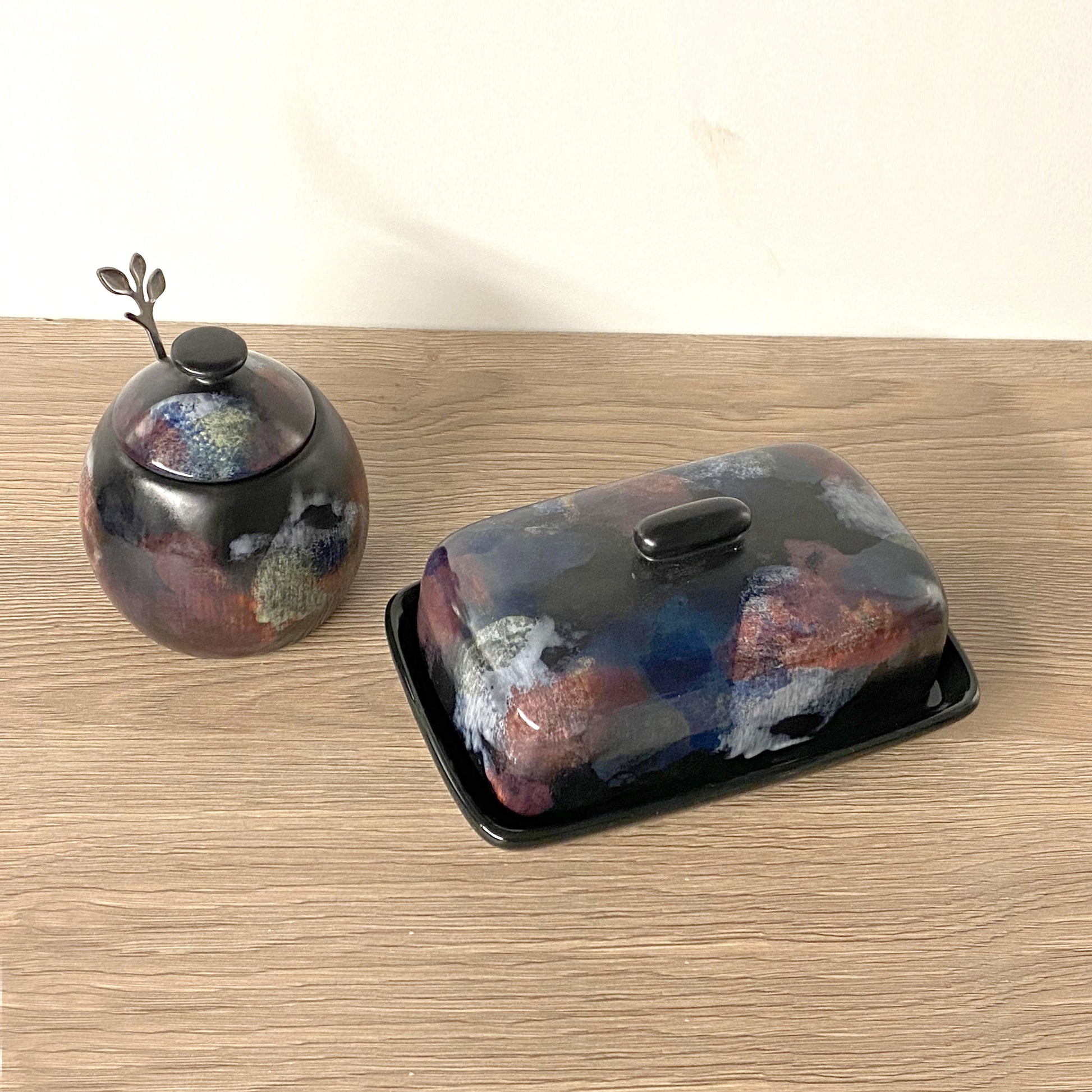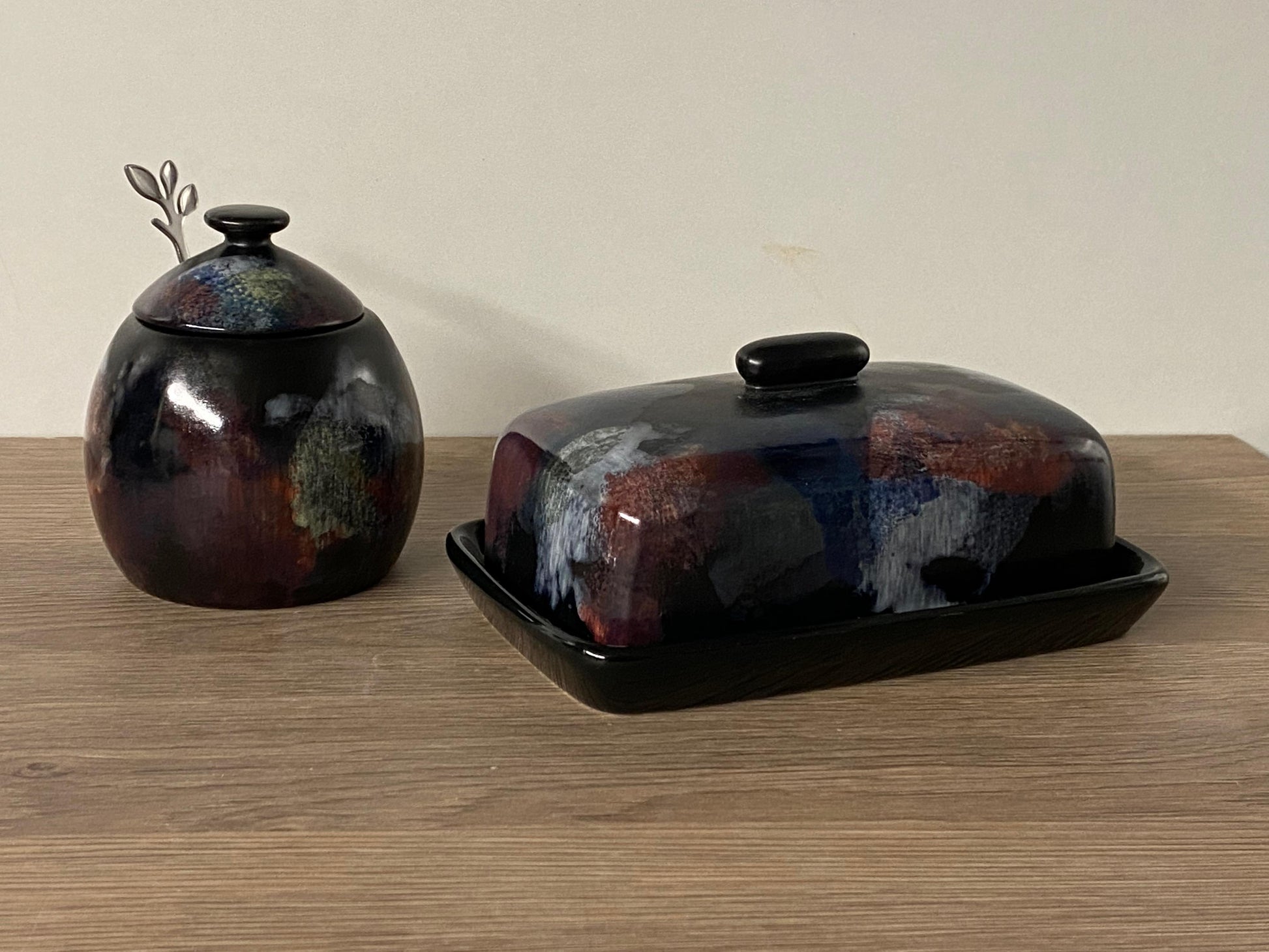 Butter Dish and Sugar Bowl Set - Abstract Glaze