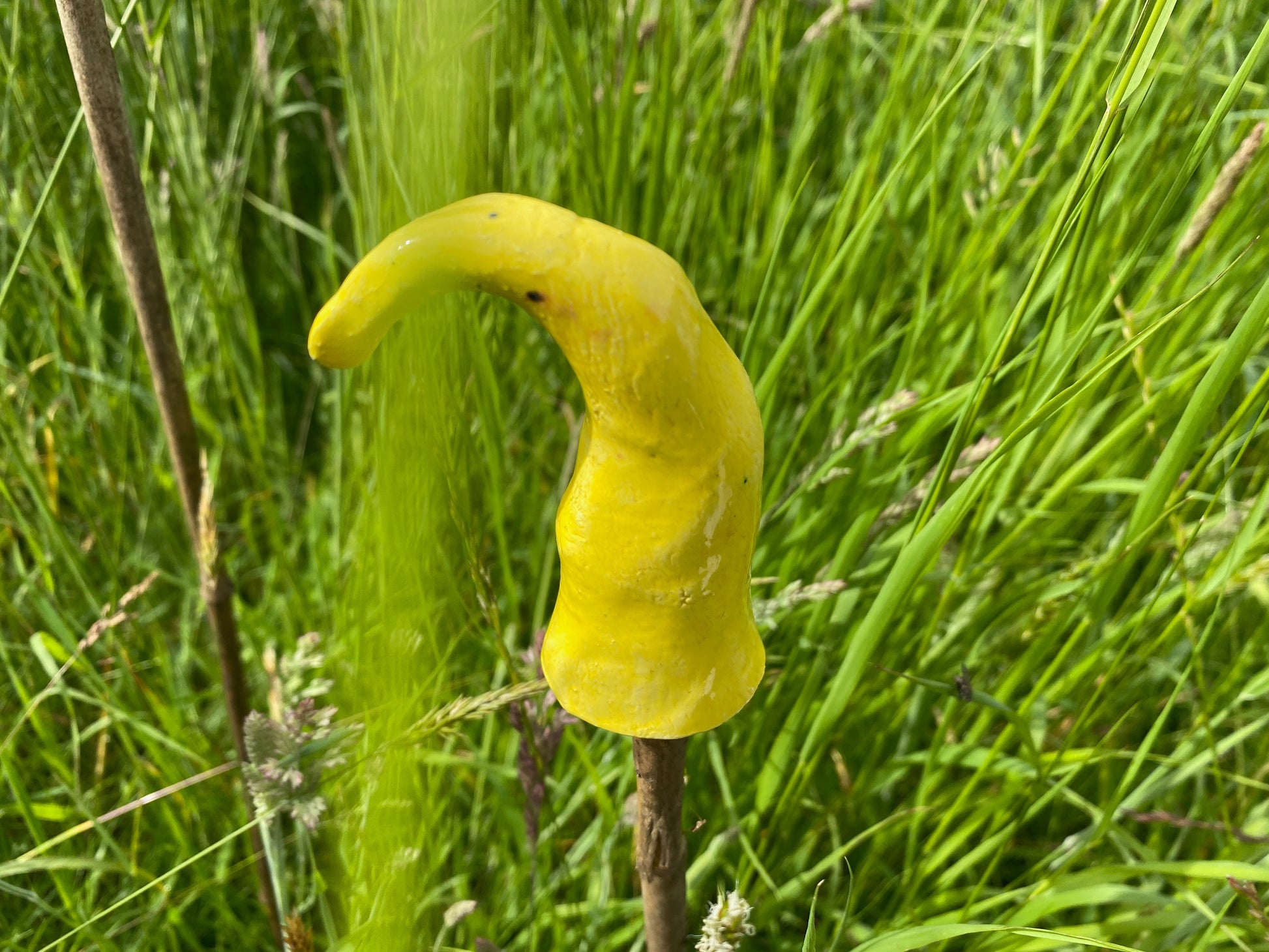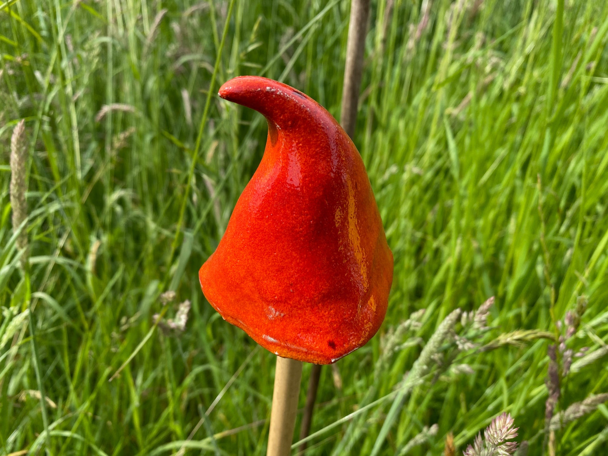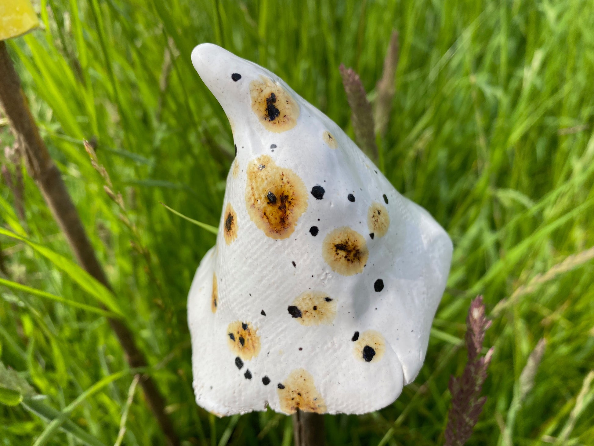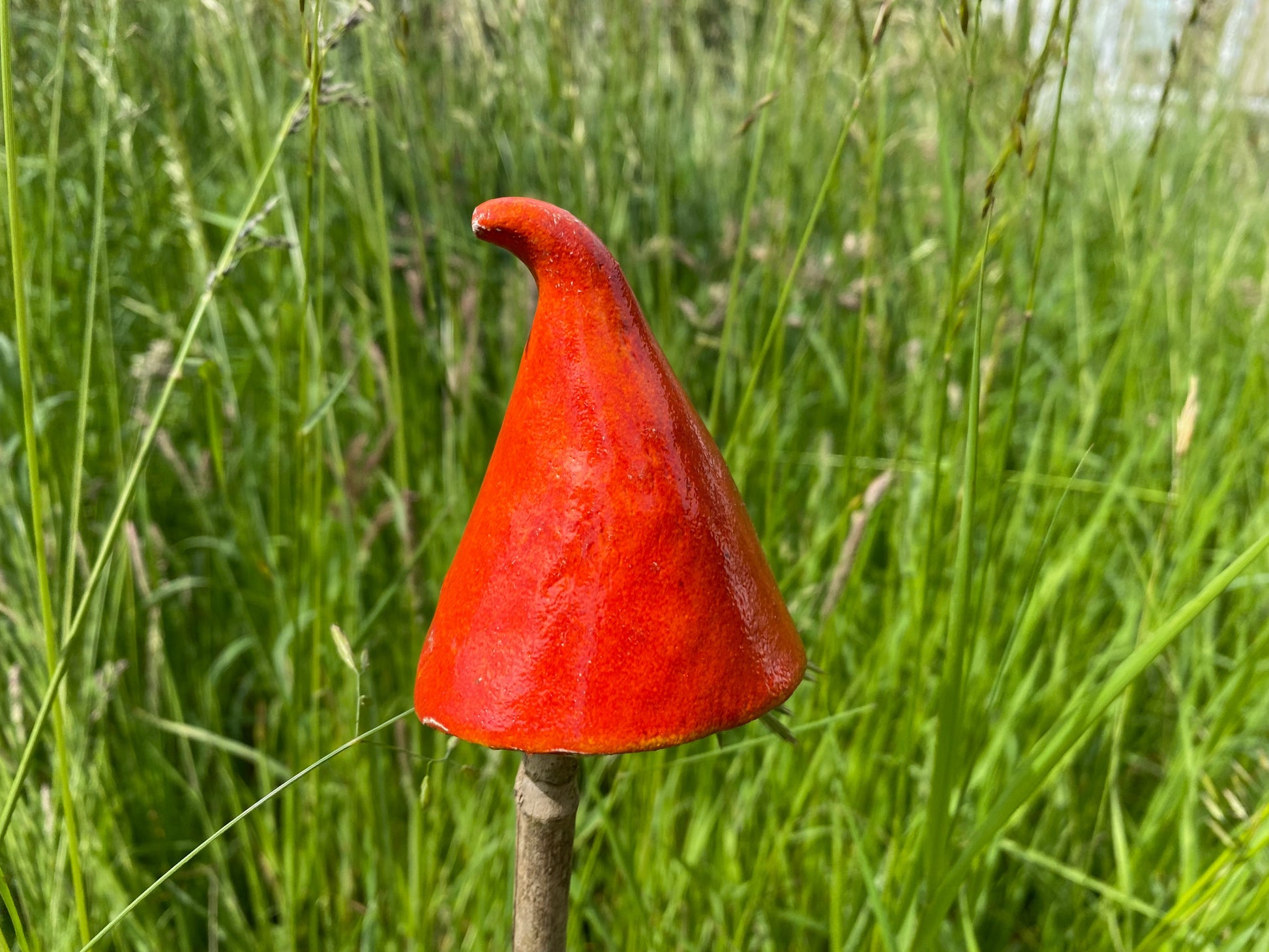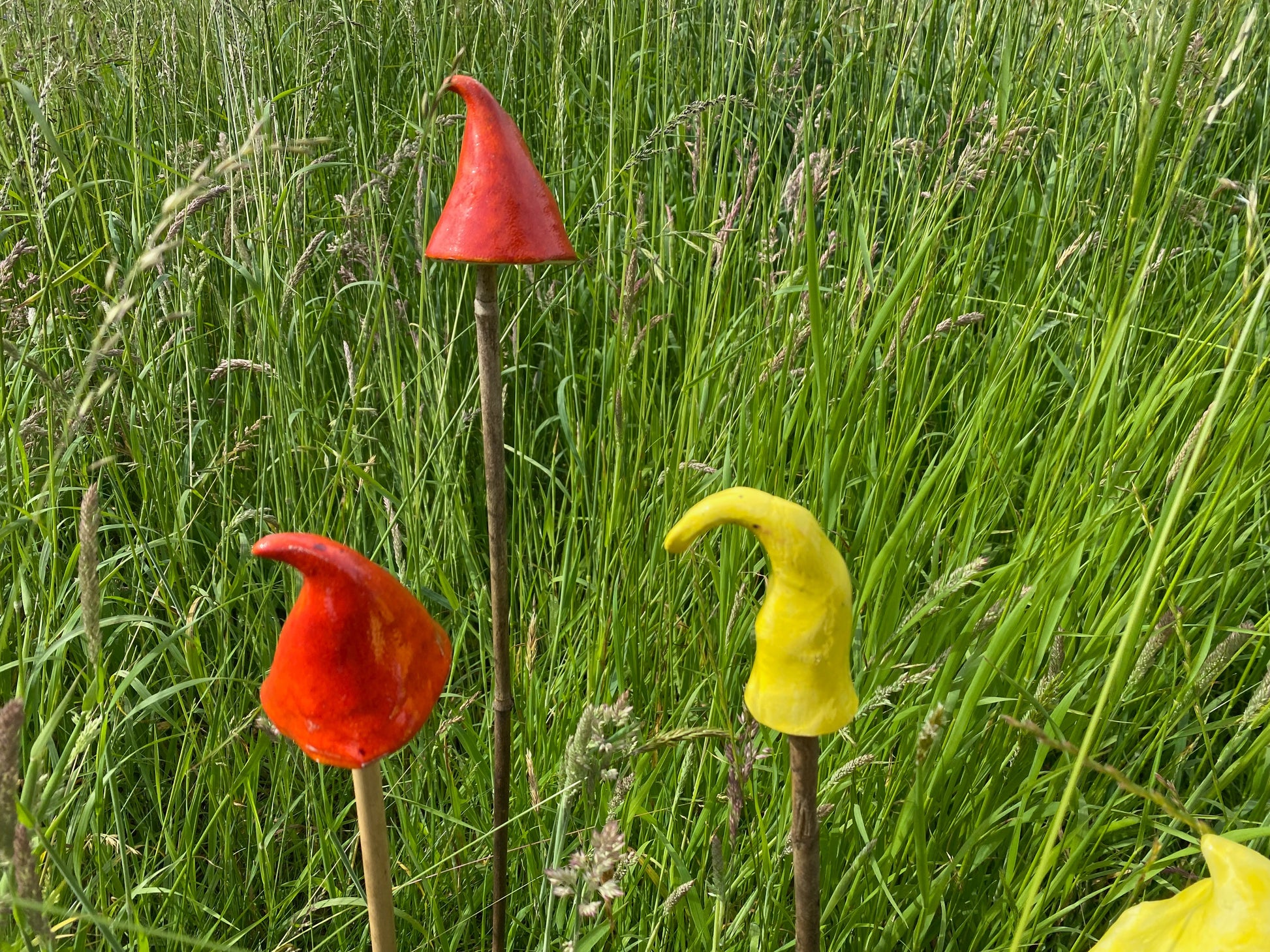 Brighten up any garden, field, window box, patio with these brightly coloured ceramics. You supply your own canes, sticks, etc and these handmade ceramic mushroom shapes simply sit on top.