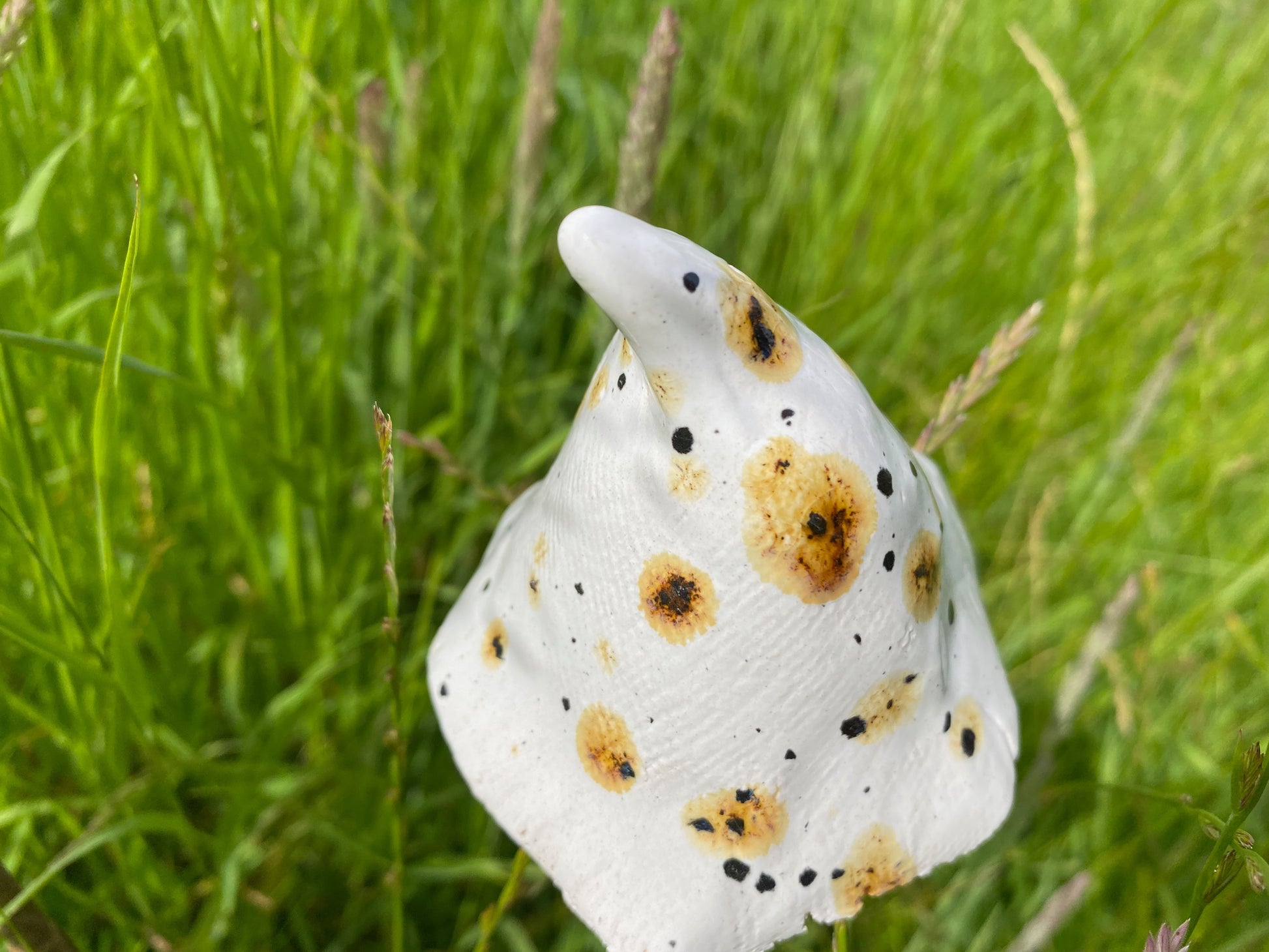 These ceramic mushrooms are handmade with earthenware clay, glazed and fired in my kiln. Because they are handmade and hand glazed each one is slightly different. They measure approx 75mm (3 inches) high by 60mm (2.5 inches) wide.
