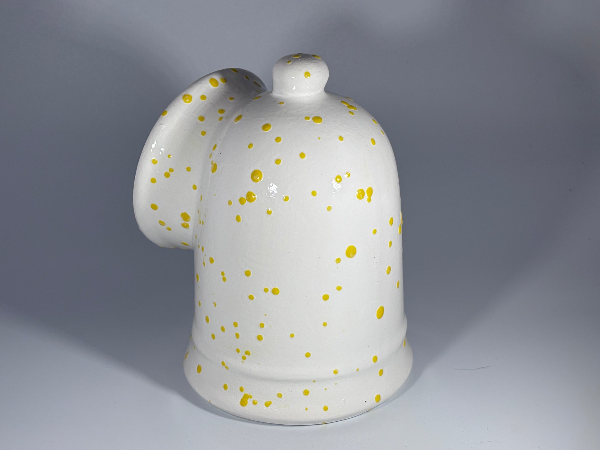 NEW Handmade Salt Pig white with yellow spots is earthenware pottery.