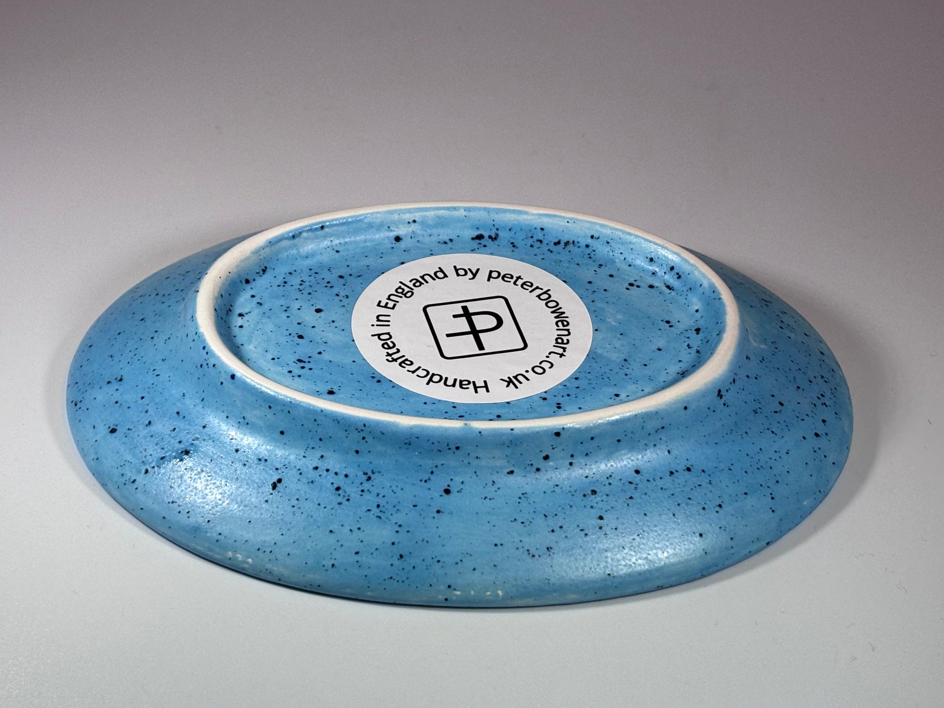 A lovely ceramic soap dish with cornflower blue glaze made in England by Peter Bowen. Suitable for soap or trinkets...!