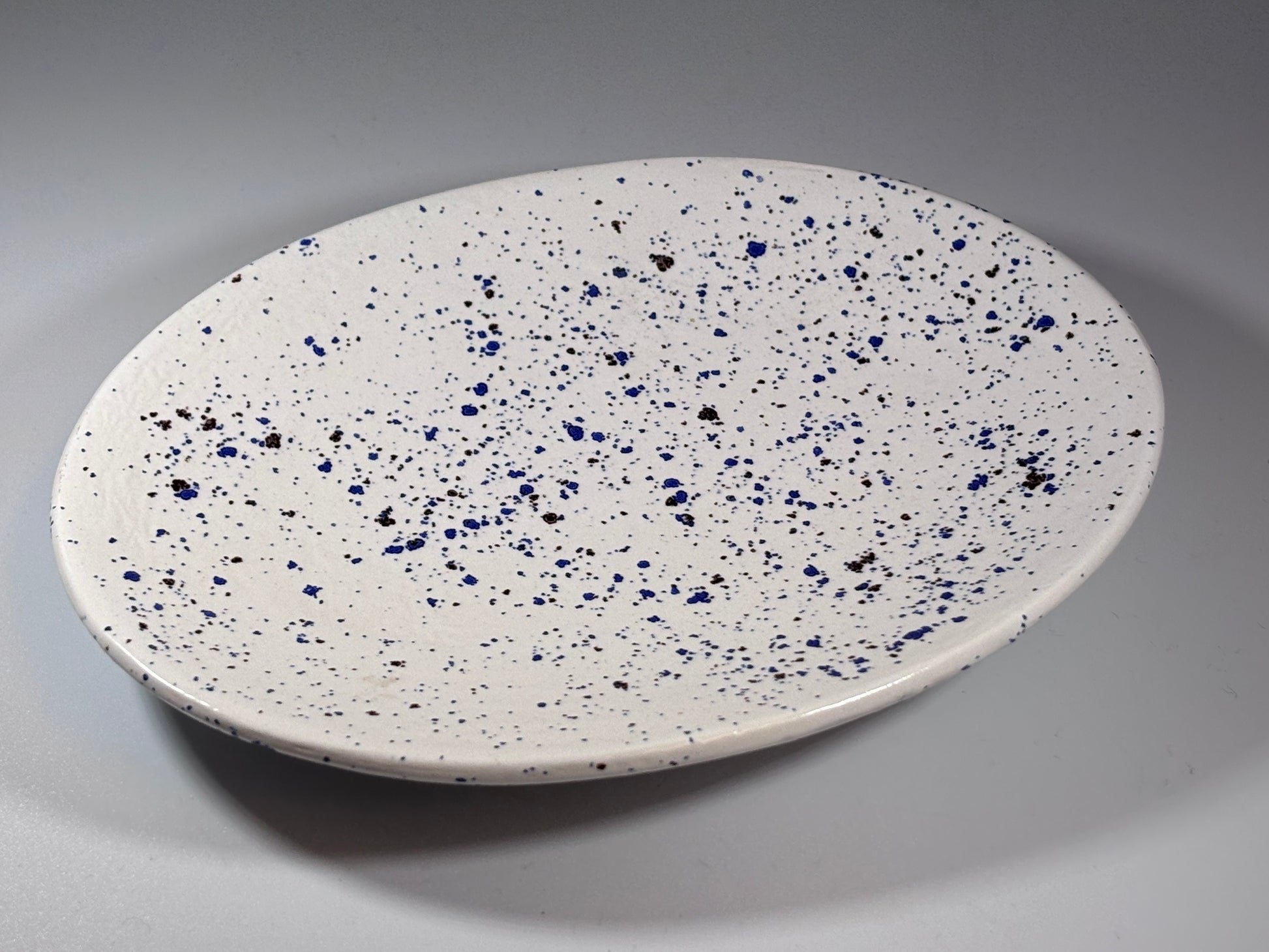 A lovely ceramic soap dish with speckled blue glaze made in England by Peter Bowen. Suitable for soap or trinkets...!