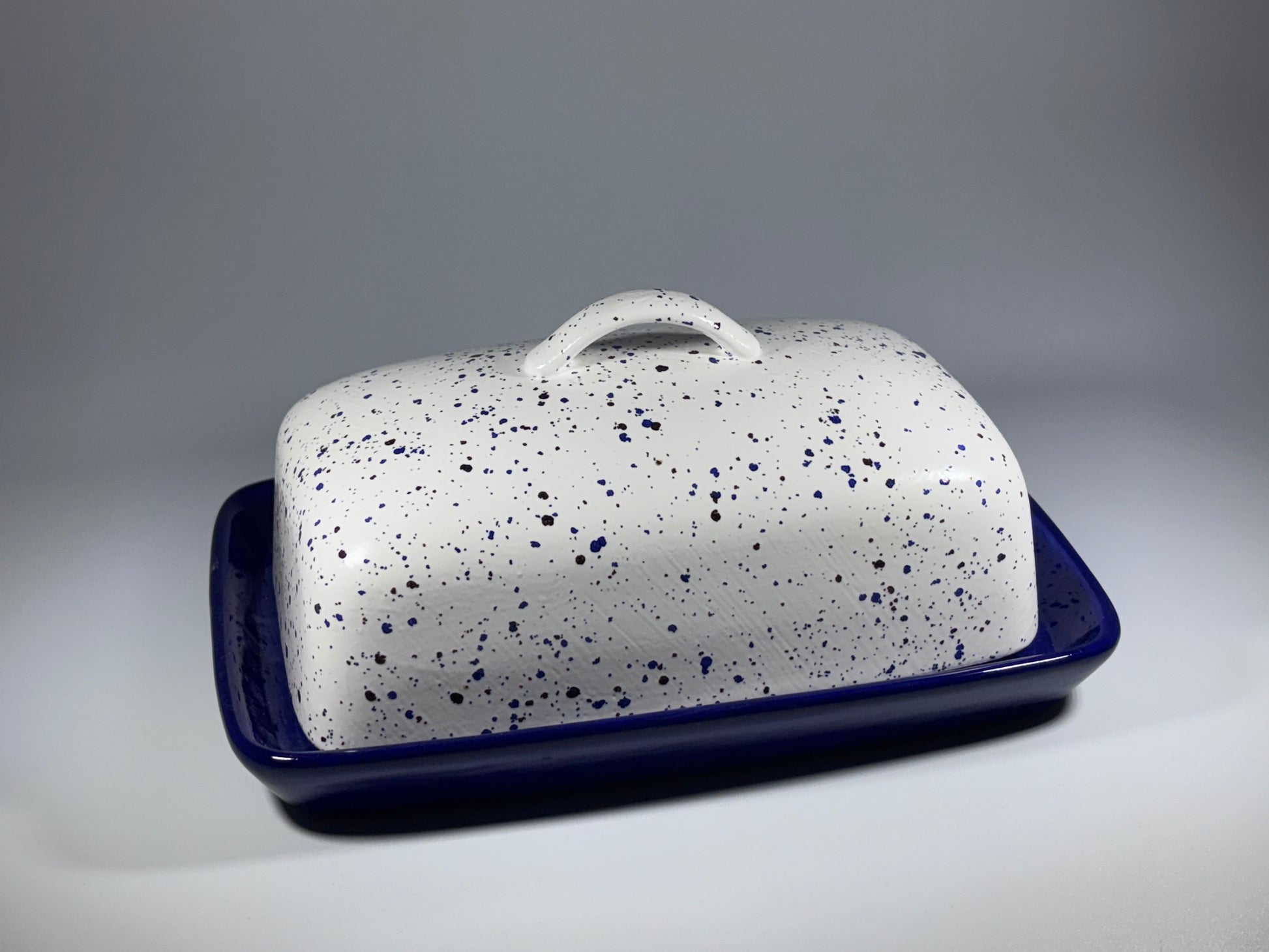 Speckled Blue Butter Dish with Handle