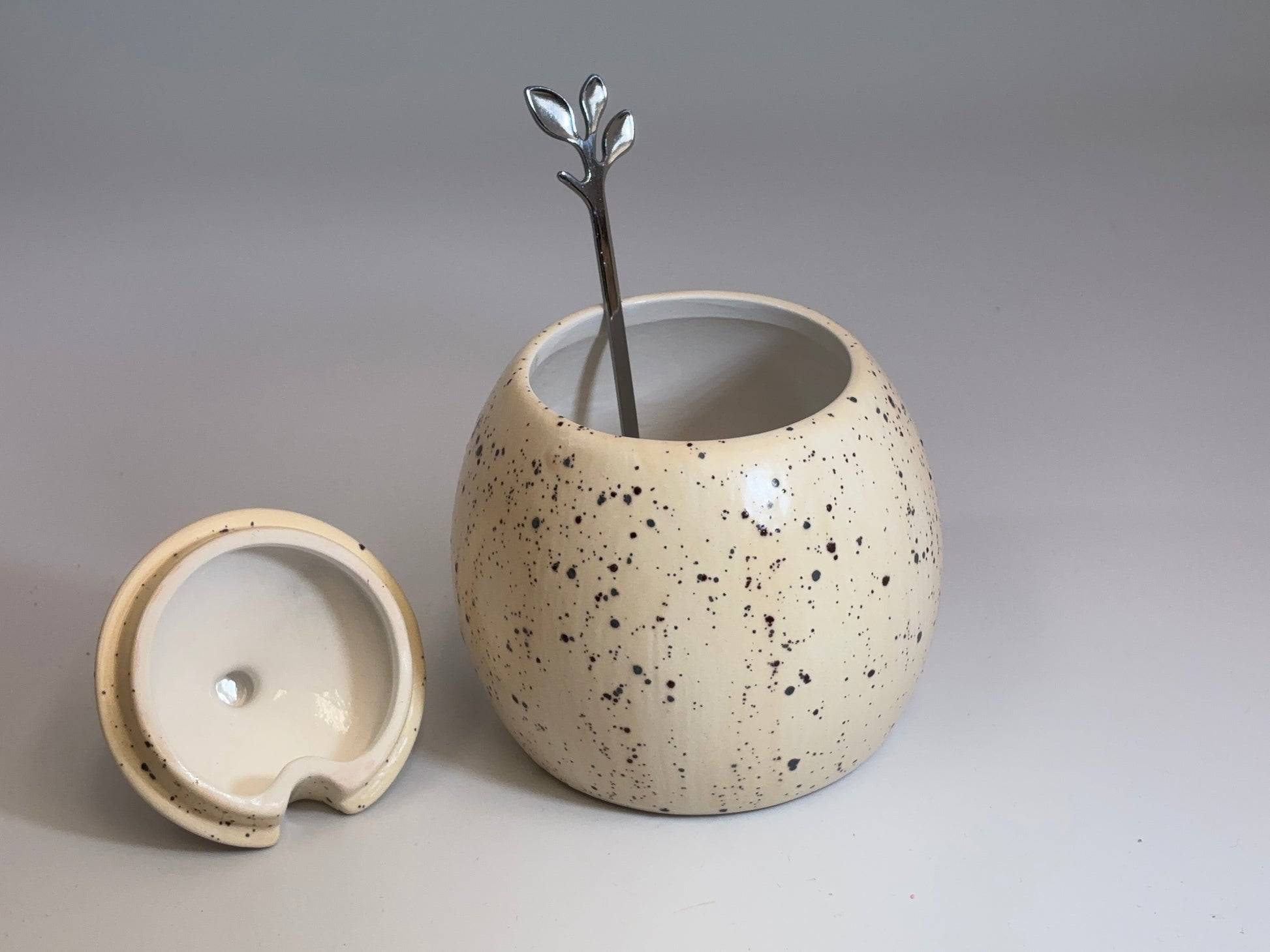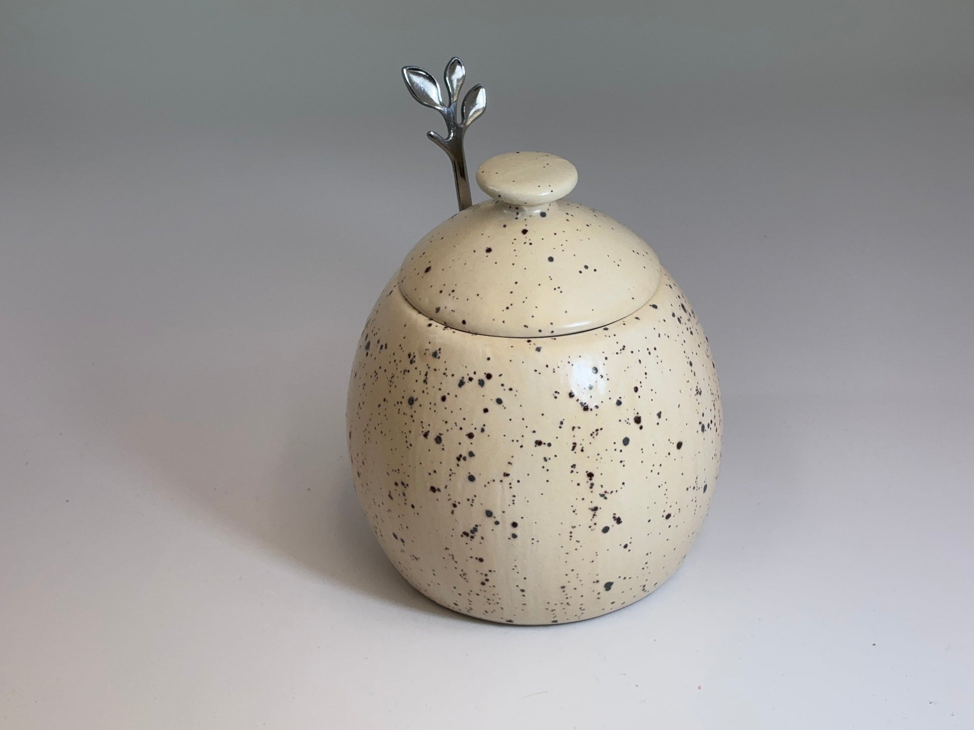 Sugar Bowl with Spoon Honey Speckle Glaze