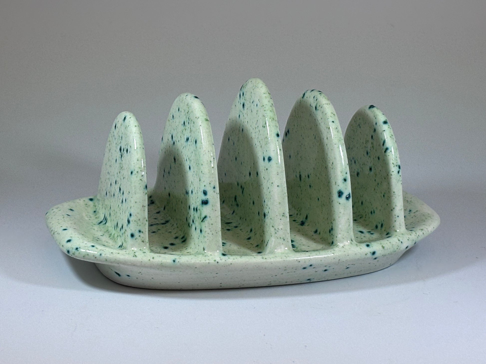 NEW Toast Rack design finished in a Speckled Green Glaze to match our Butter Dish for your breakfast table. The extra-wide slots allow for thicker slices of toast.