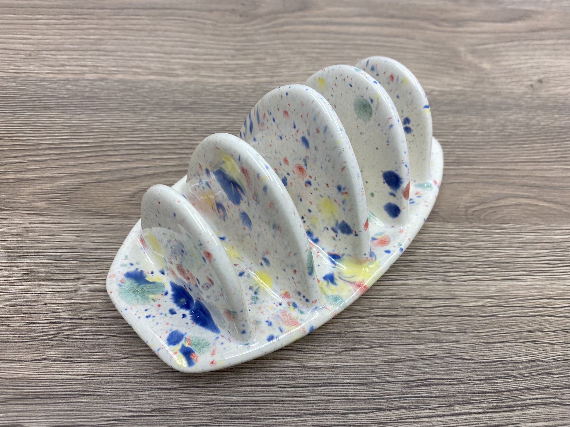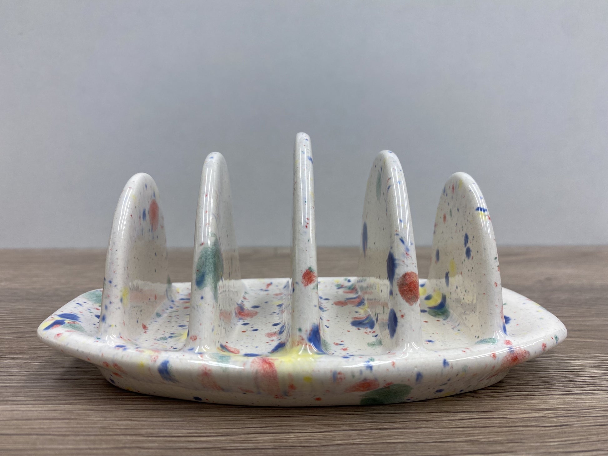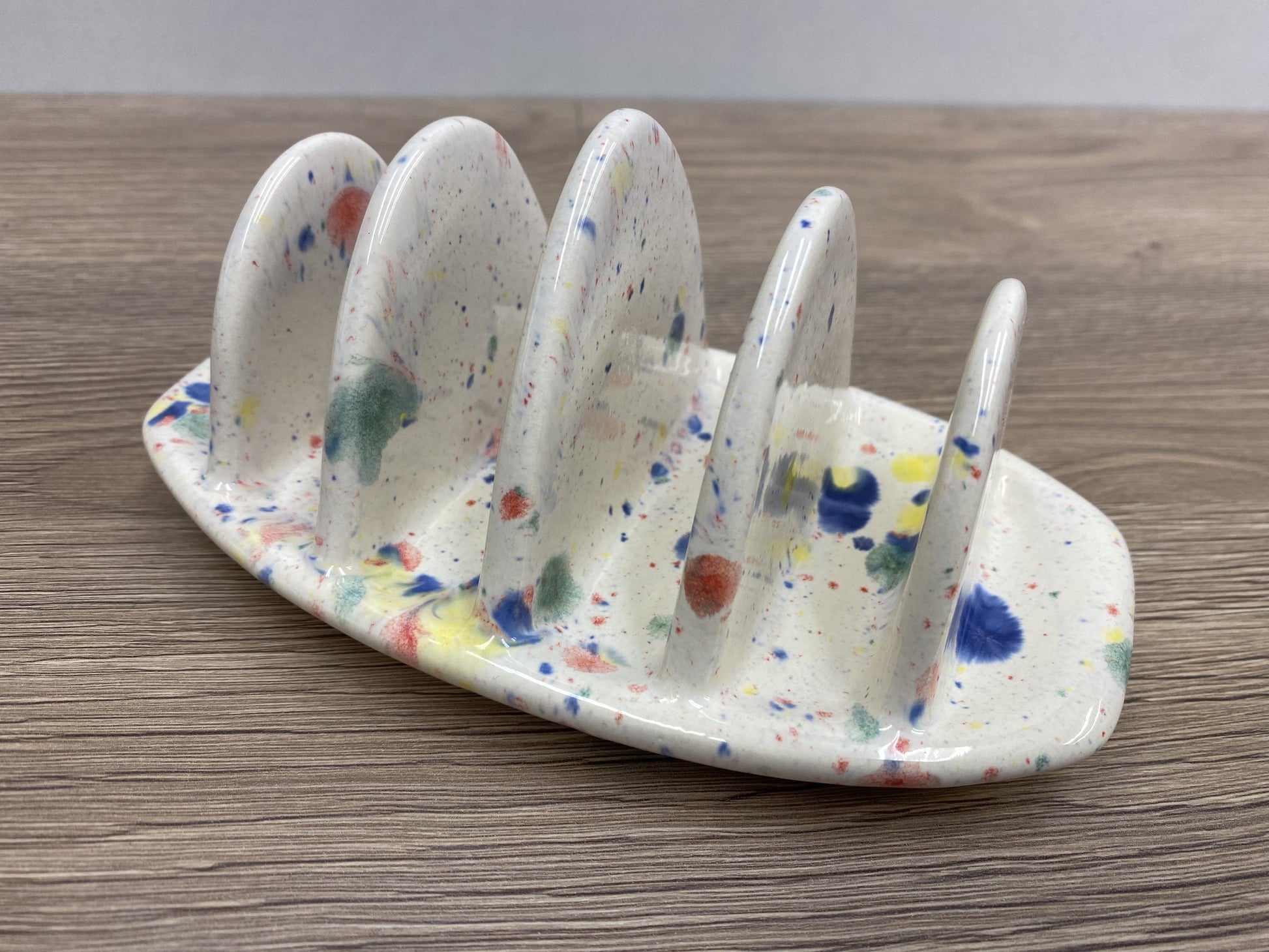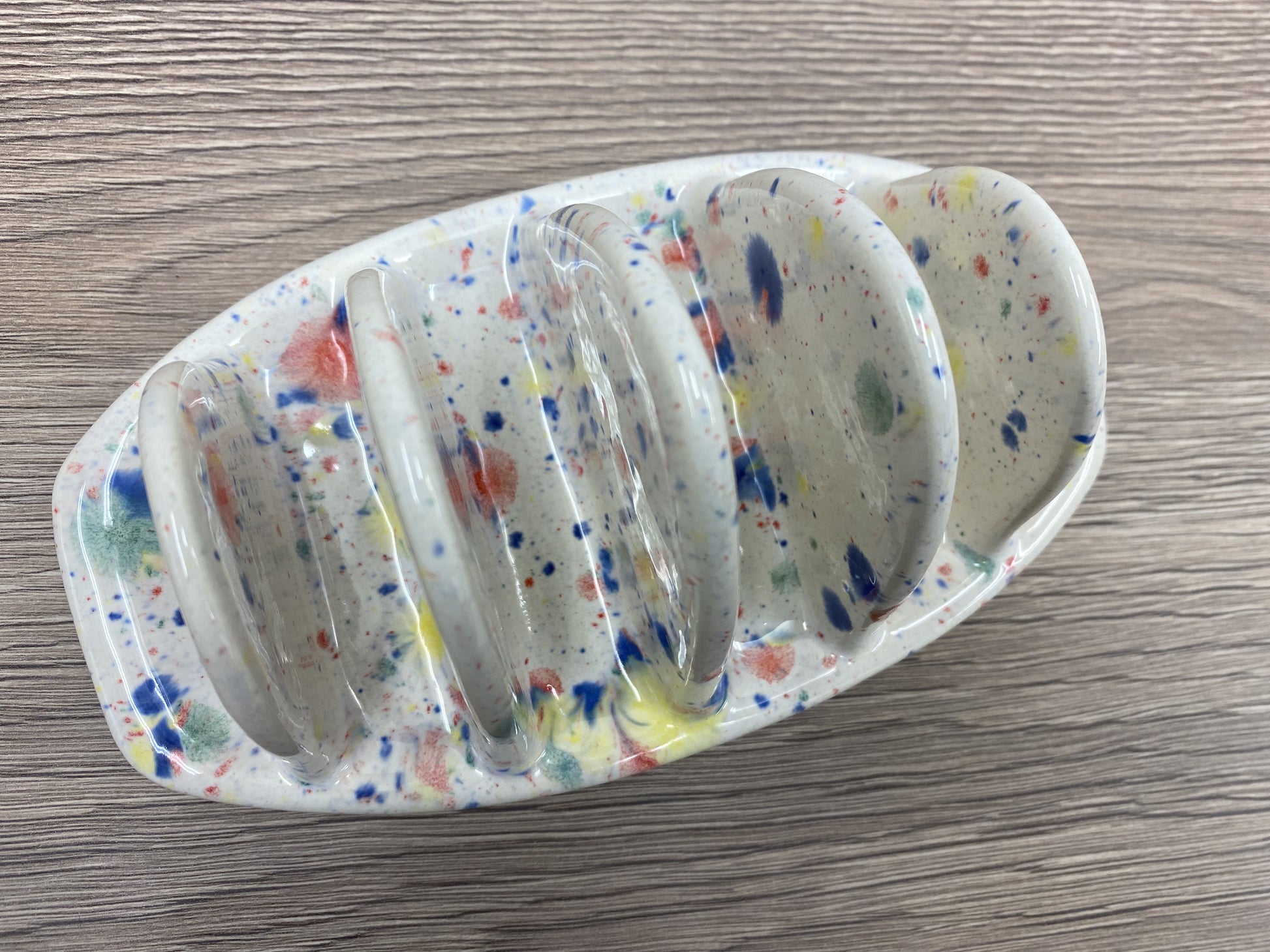 NEW Toast Rack design finished in a Brightly Coloured Glaze to match our Butter Dish and Sugar Bowl for your breakfast table. The extra-wide slots allow for thicker slices of toast.